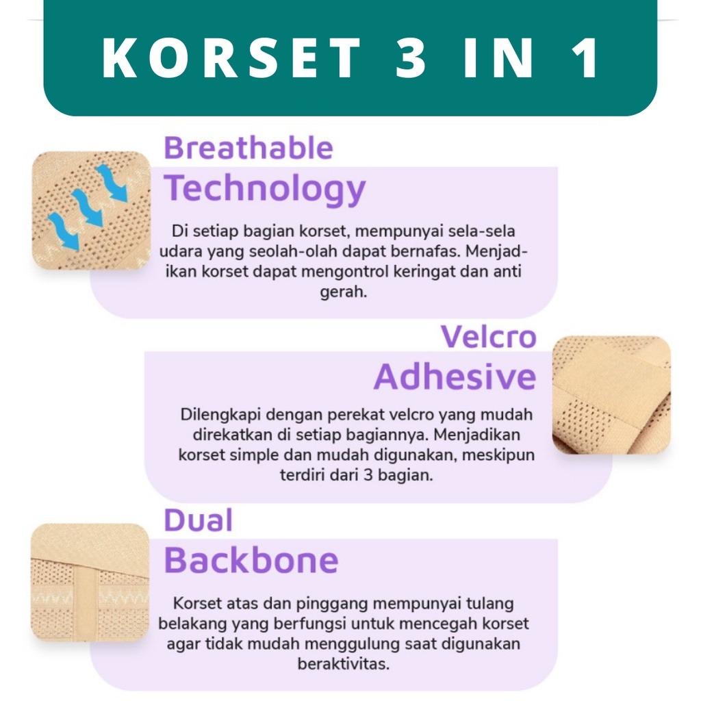 Sangat rekomen untuk ibu sehabis melahirkan, terbuat dari latex dan karet elastis, praktis dan mudah digunakan. Dapat 3 korset sekaligus yang bisa mengunci 3 bagian perut dan pinggang