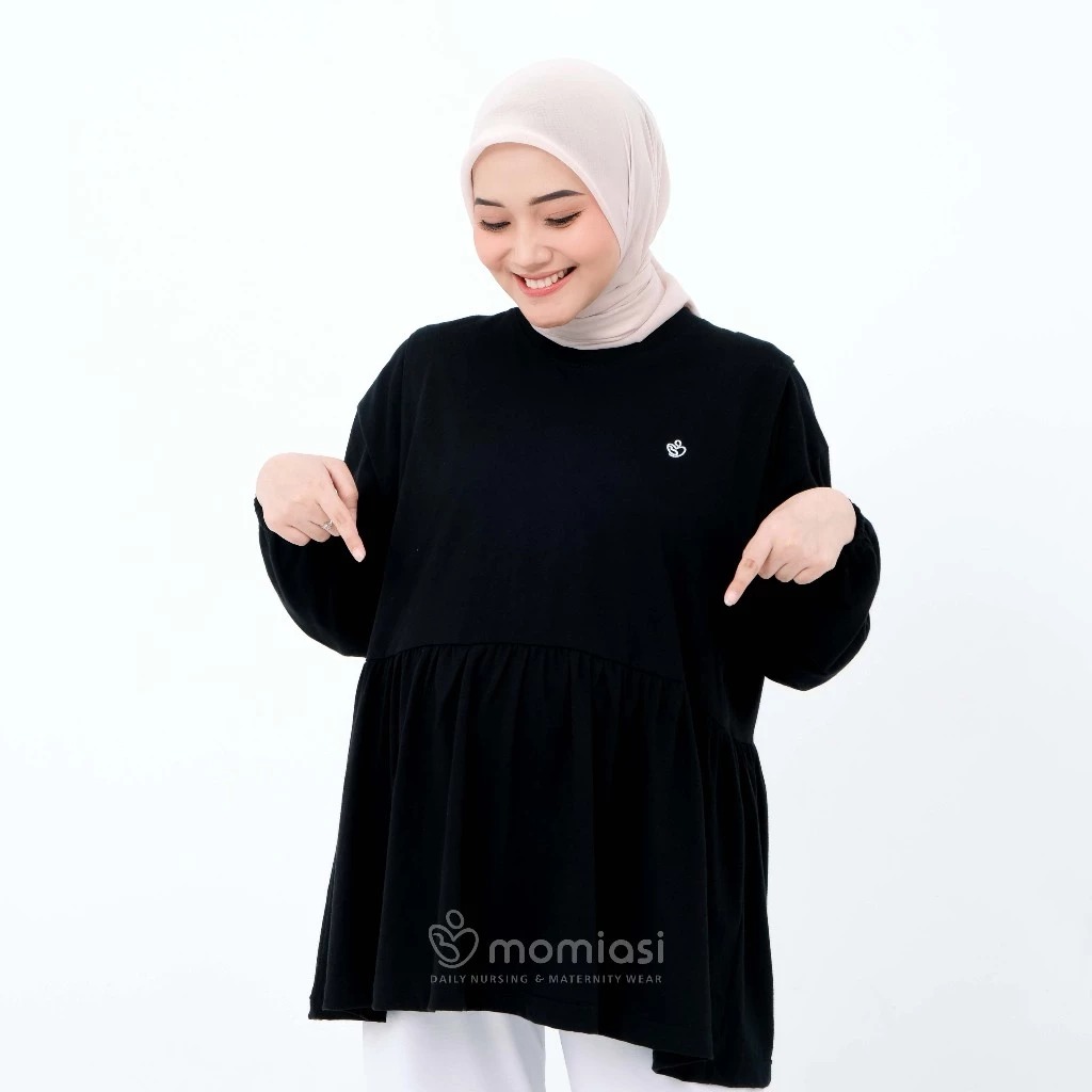 Ayana Blouse Ruffle dari Momiasi hadir dengan desain cantik beraksen ruffle yang membuat tampilan lebih feminin. Dilengkapi bukaan samping yang praktis untuk menyusui, cocok digunakan di dalam maupun luar ruangan. Bumil & wudhu friendly, dengan model bigsize dan lengan balon yang nyaman. Kualitas bahan dan jahitan rapi, siap menunjang aktivitas harian Momi.
