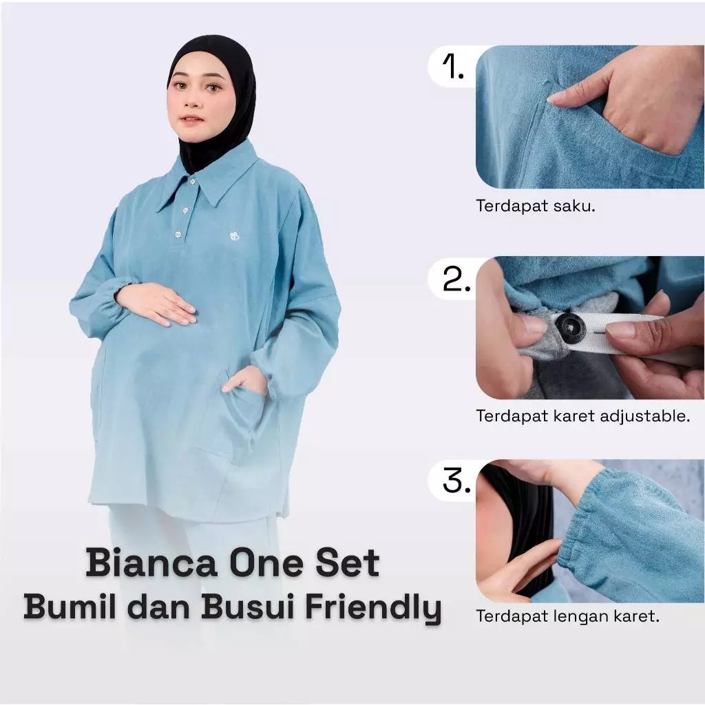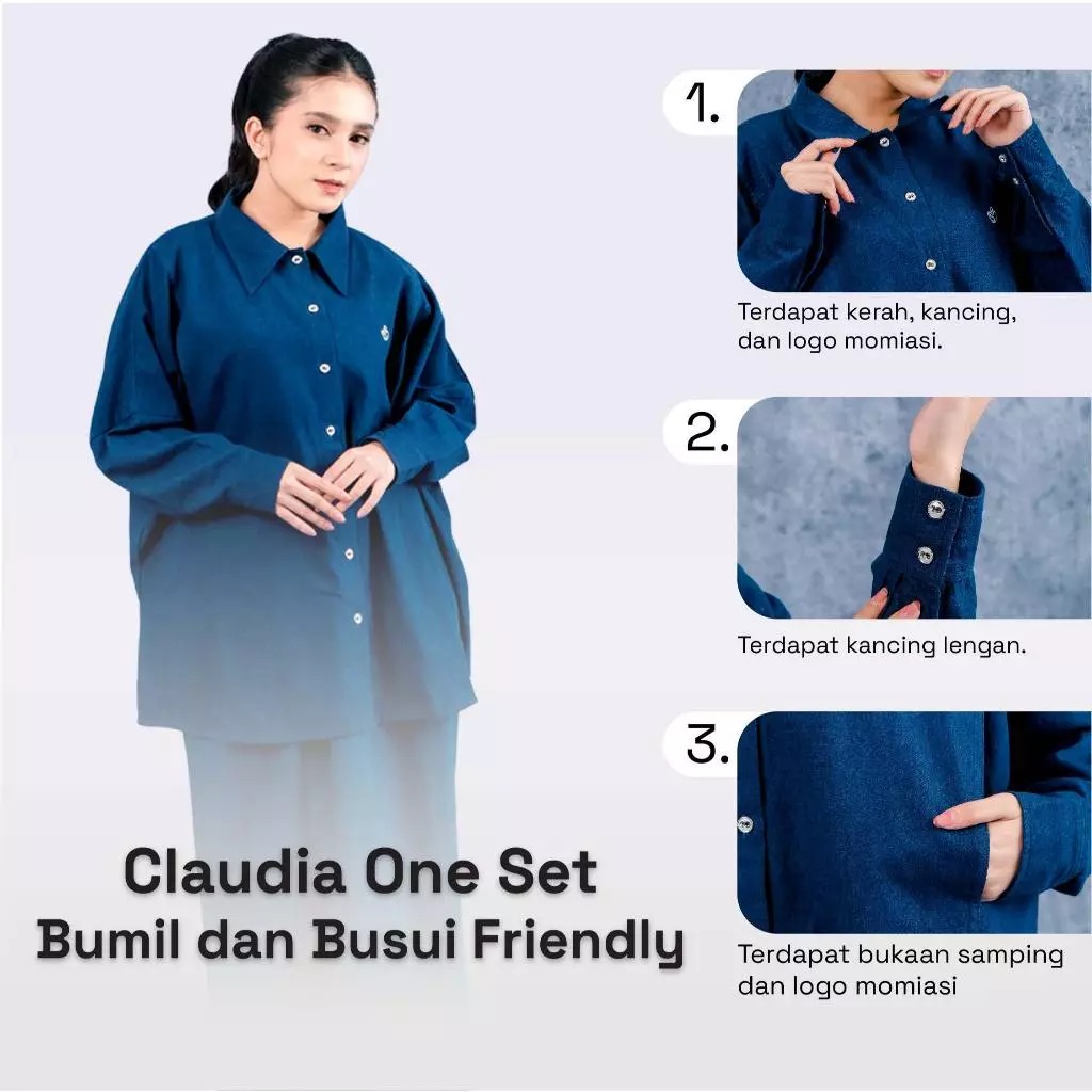 Momiasi mempersembahkan Bianca & Claudia One Set Denim Eksklusif yang dirancang khusus untuk bumil dan busui yang ingin tampil elegan dengan model busana yang tidak lekang oleh waktu dan tetap relevan serta bisa dikenakan kapan saja, terlepas dari model yang berlaku tanpa terpengaruhi oleh perubahan musim atau era dengan elemen klasik dan simpel yang stylish. Dibuat dari denim premium dengan gramasi rendah sehingga lebih ringan, lembut, adem, dan nyaman dipakai sepanjang hari.