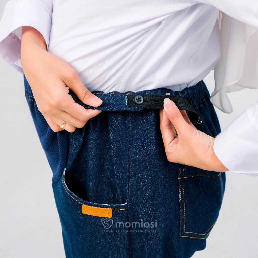 Momiasi Celana Hamil Kulot Jeans Aktivitas jadi lebih nyaman dengan Momiasi Maternity Jeans! Didesain khusus dengan waistband eksklusif yang dapat menyokong perut lebih sempurna, sehingga dapat mengurangi nyeri punggung dan panggul selama kehamilan.