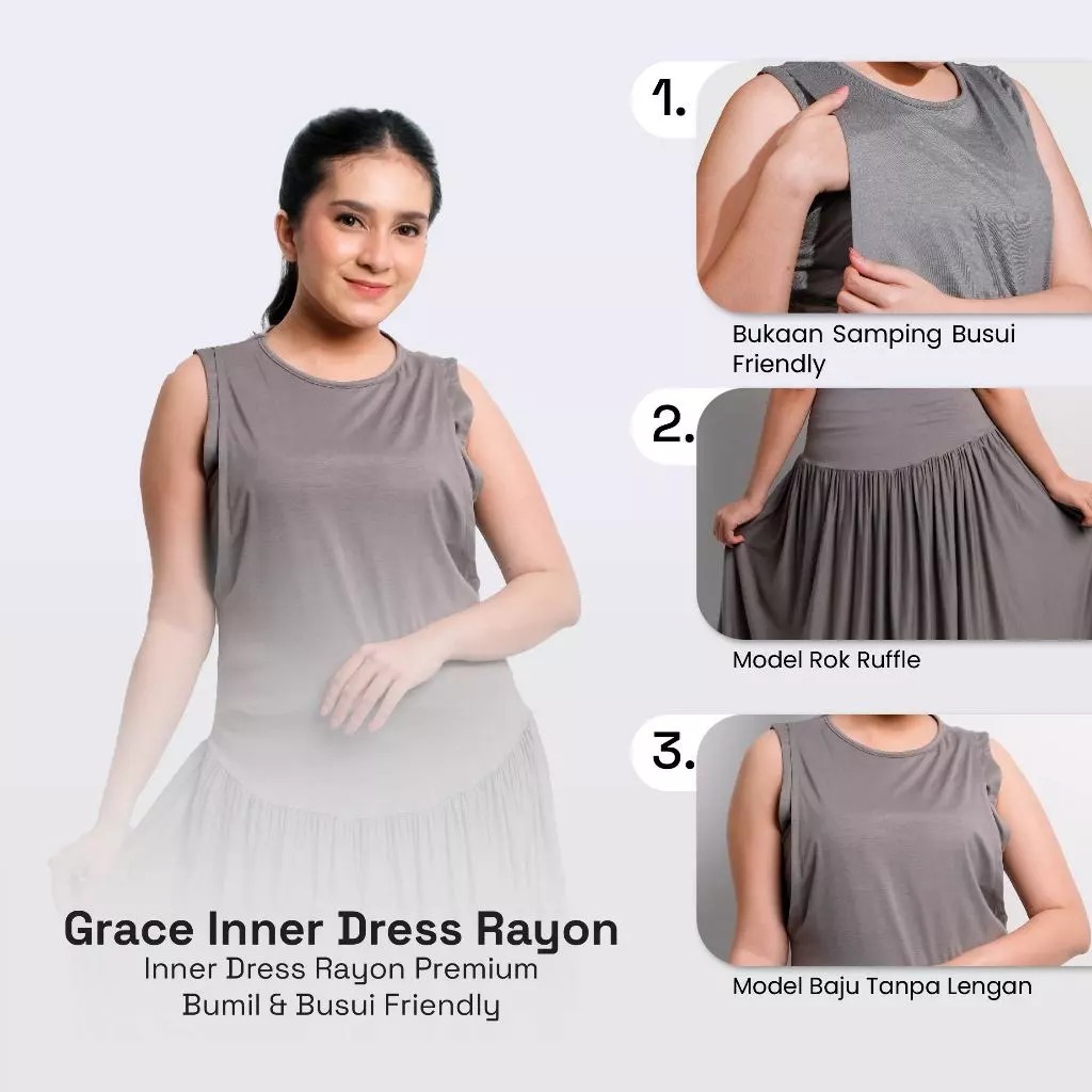Special untuk mommies yang sedang mencari inner dress yang cocok dipakai untuk berpergian dan tetap stylist. Momiasi kini menghadirkan Grace & Camelia Inner Dress berbahan lembut dan adem. Cocok banget di mix and match dengan outer dan tentunya bumil & busui friendly karena terdapat bukaan samping dan bahan nya stretchy sehingga mommies gak perlu worry lagi !