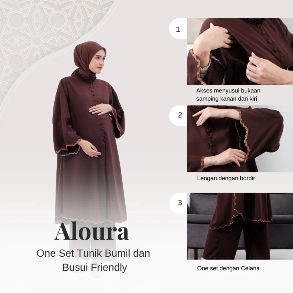 Momiasi hadir untuk melengkapi moment spesial mommies dengan product One Set Tunik Melayu Alora. Dibuat dengan bentuk longgar yang memberikan keleluasaan dan kenyamanan bagi ibu hamil dan menyusui agar dapat tetap bergerak dengan nyaman. Detail bordiran pada lengan dan baju menambah kesan elegan pada tunik ini, membuat product ini cocok untuk digunakan mommies pada moment besar dan hari raya idul fitri nanti.